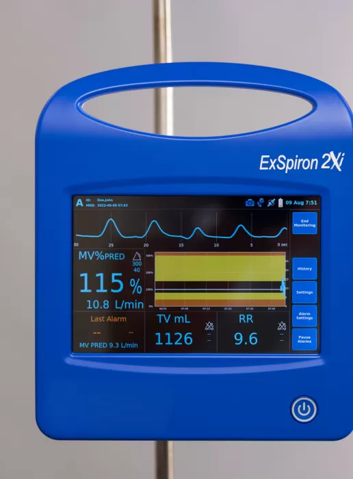 ExSpiron displays measurements and trends for minute ventilation, tidal volume and respiratory rate.